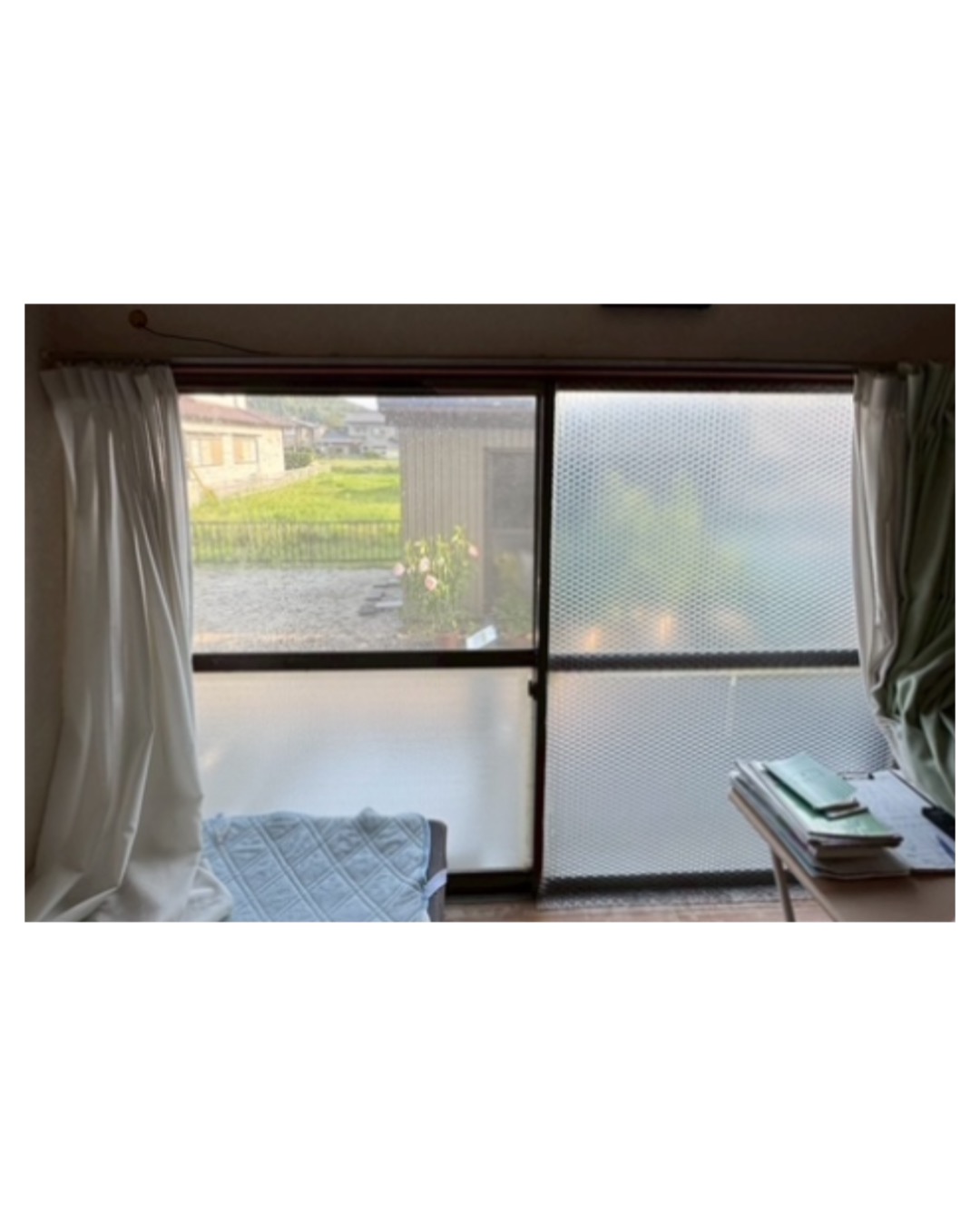 このお部屋は出入りが多く窓が2枚の内窓は不便になってしまう為、カバー工法での窓リフォームです😊2枚建てから4枚建て窓になり開放感がupし広く感じますね