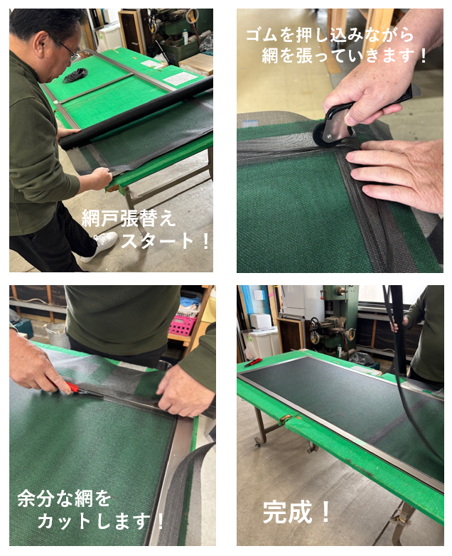 網だけの交換や新品にまるごと交換も承っています!網の交換は約30分程で完成です😊