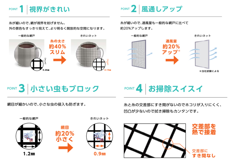 虫がとどまりにくい網戸