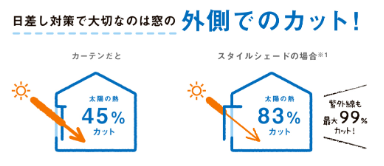 ●シェードをすると太陽の熱を83%カット
